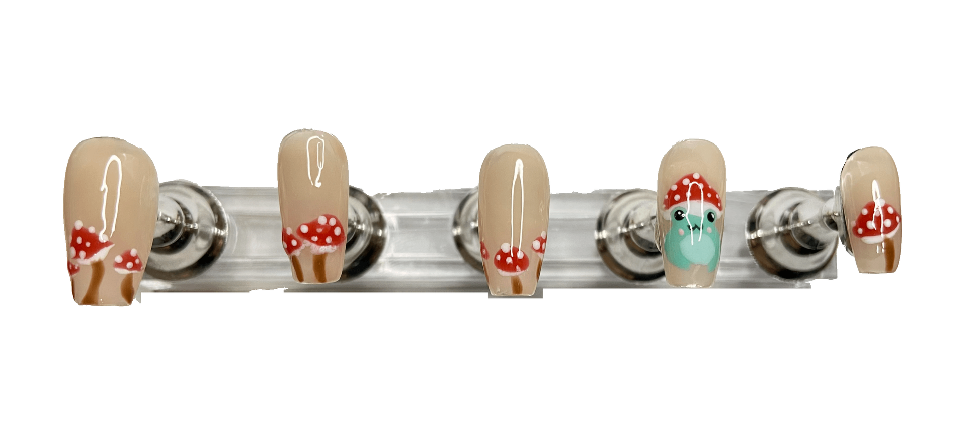 Shrooms: is this cottagecore? - super adorable mushroom frog nail design